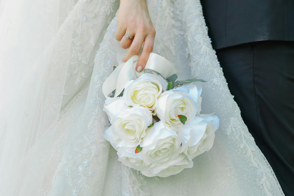 O que simboliza o buquê branco de noiva?