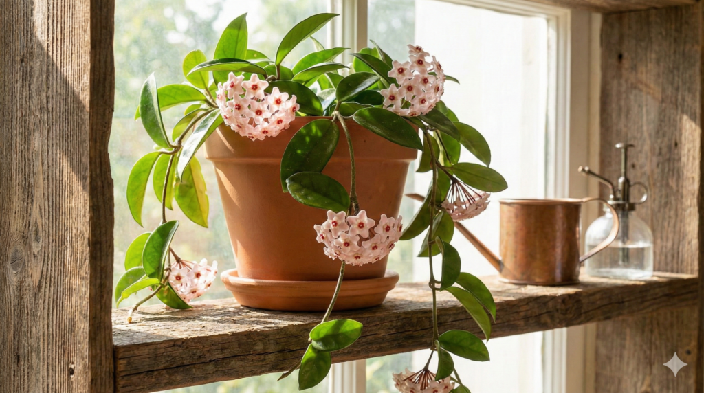 Dica de Especialista: Se as folhas da sua Hoya estiverem com uma cor verde-pálida e sem aquele brilho característico, mude-a para um local 50cm mais perto da janela. O toque final é limpar o pó das folhas com um pano úmido para que elas “respirem” e absorvam a luz com eficiência total.