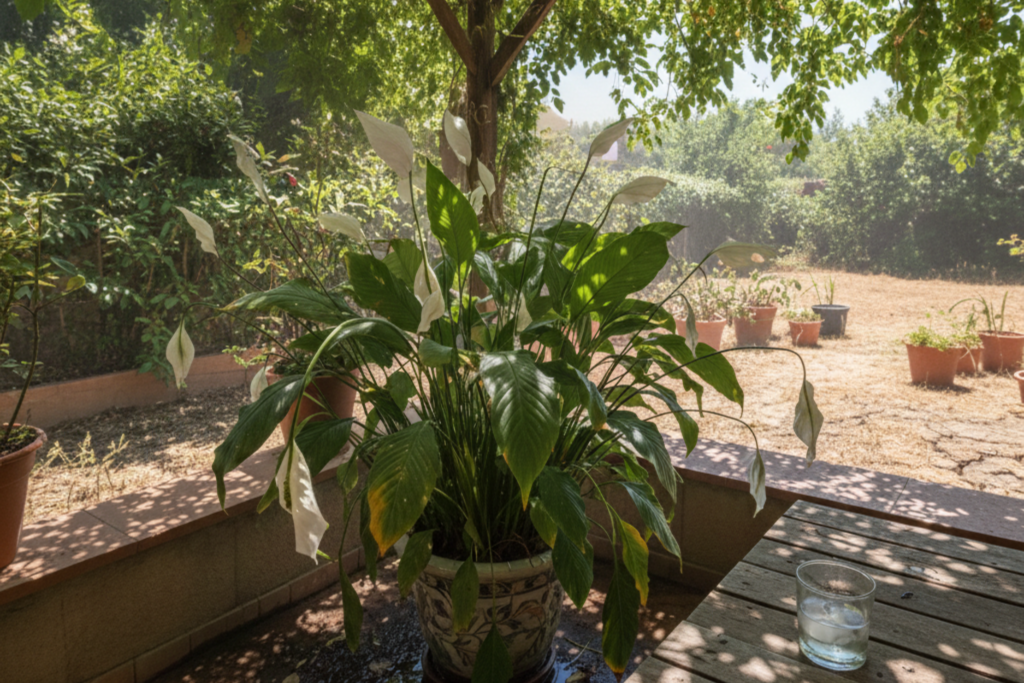 Por que o Lírio da Paz pode murchar no calor mesmo na sombra?